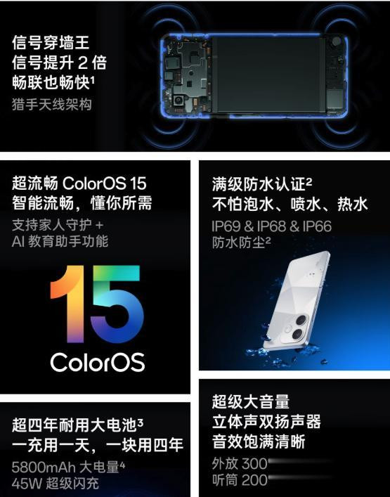 快充方面,80W有线闪充的加持让回血效率大幅提升,30分钟即可充至65%,早上洗漱的间隙就能为手机快速“续命”。更贴心的是,ColorOS15 系统搭载的智能省电引擎,能根据使用习惯动态调节功耗,后台闲置应用功耗降低30%,进一步延长续航时长。