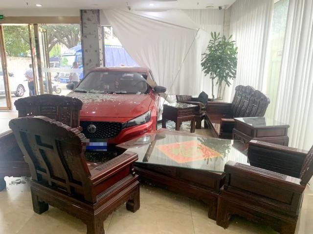 柳州市公安局交通管理支队柳江大队接到报警后立即赶赴现场进行处置。经调查,当事人薛某某驾驶桂B7****牌红色小型轿车冲撞进入酒店大厅,造成车辆受损,酒店玻璃、沙发轻微财产损坏,酒店大厅1名客人肖某表皮轻微受伤。